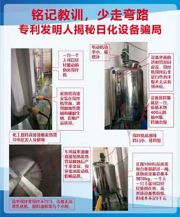 1、設備內部安裝發(fā)熱管直接接觸化工原料引發(fā)人身安全隱患的一定是騙局