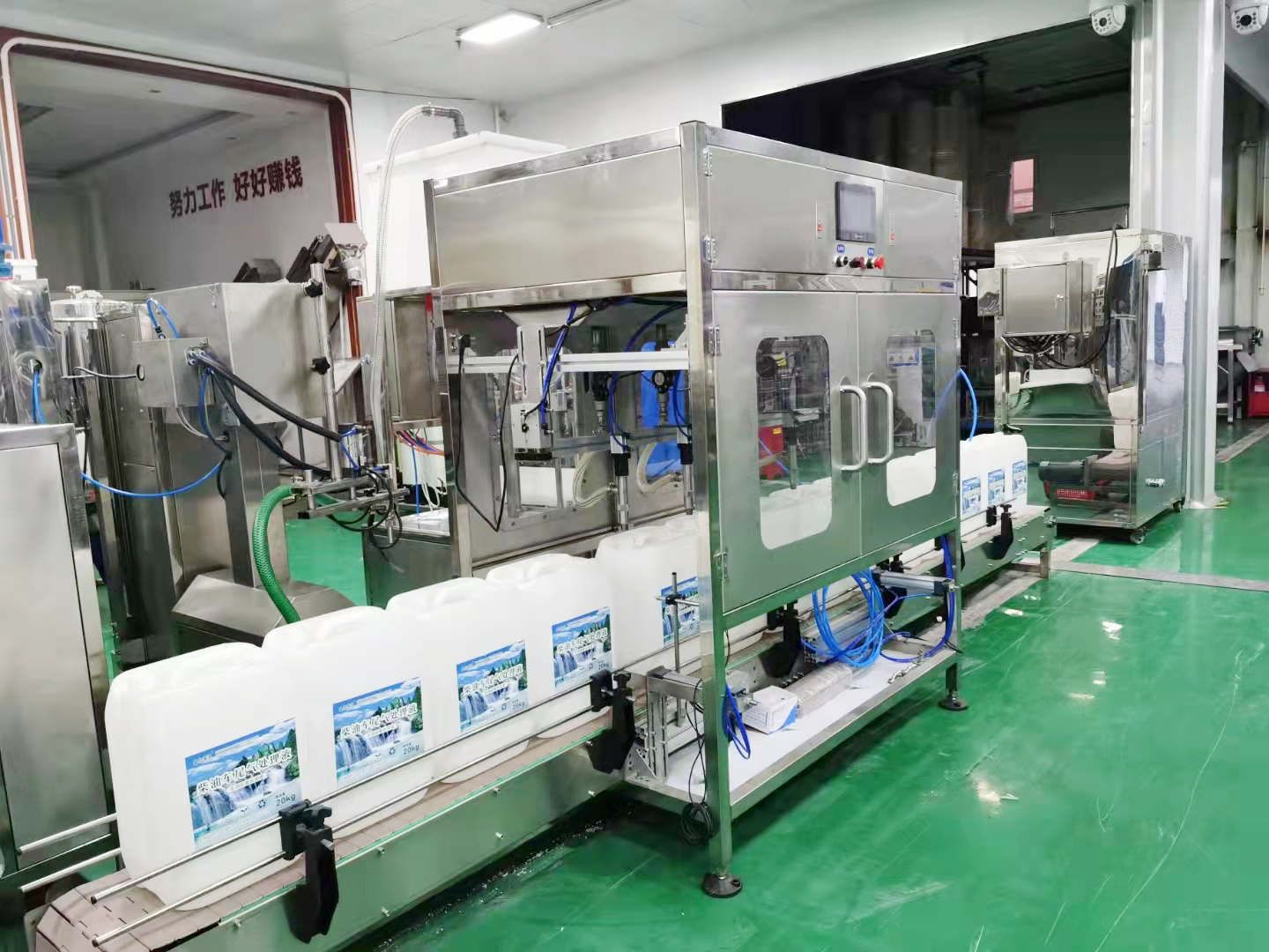 8、成品車用尿素溶液經(jīng)過每小時(shí)產(chǎn)量1500-2000公斤的高效氣動(dòng)重力灌裝機(jī)罐裝,在經(jīng)過擰蓋機(jī)或人工擰蓋、鋁箔機(jī)封口,貼標(biāo)即為標(biāo)準(zhǔn)車用尿素容易成品。