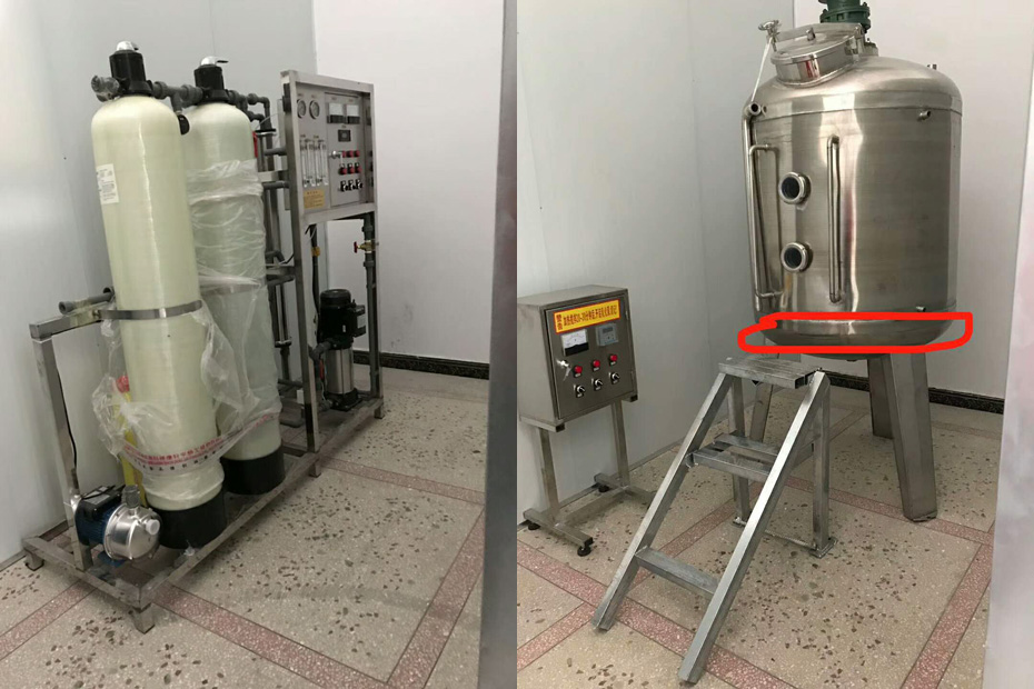 多項(xiàng)專利發(fā)明人王先軍 手機(jī):150-7483-5702 手機(jī):195-7316-0288便宜沒好貨,騙局無處不在,這是某用戶從其他設(shè)備銷售單位采購的洗滌劑設(shè)備,首先,水處理就是一個(gè)做工粗造的簡單過濾器,設(shè)備配置極其簡單,水處理設(shè)備支架簡陋,運(yùn)輸過程稍有震動(dòng)就會(huì)四分五裂,這類水處理設(shè)備大都采用廢舊收購公司回收處理的低價(jià)過濾膜,根本無法處理水中的重金屬,影響產(chǎn)品去污力,也無法清除水中的大腸桿菌等細(xì)菌導(dǎo)致產(chǎn)品發(fā)臭混濁變質(zhì),如圖所示的攪拌機(jī)屬于單層,僅為底部區(qū)域加熱,即使加熱10小時(shí),溫度也滿足不了低溫下洗潔精、洗衣液原料溶解的需要,該加熱裝置形同虛設(shè),其實(shí),就是一個(gè)單層普通攪拌機(jī)。