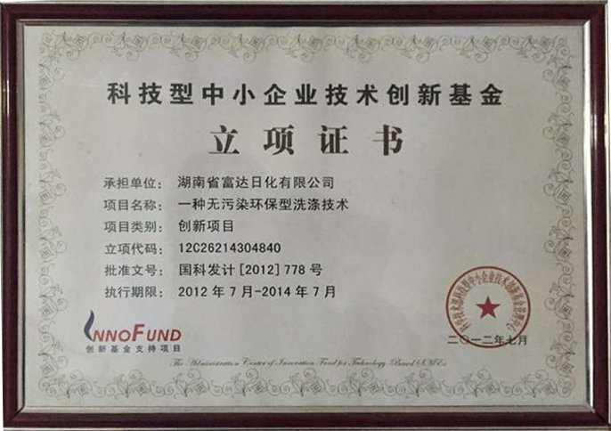 1.2012年獲得國家科技部”一種無污染環(huán)保型洗滌技術“技術創(chuàng)新基金; 2.公司注冊商標有: 相思竹 富達 生態(tài)凈瀑